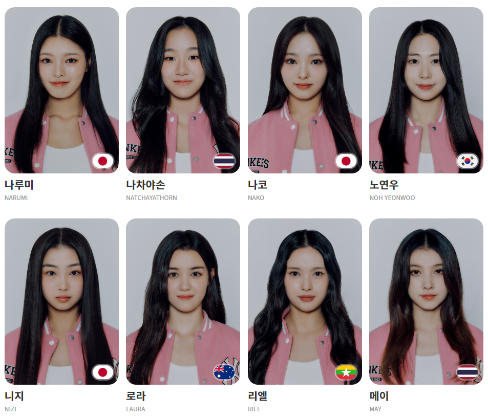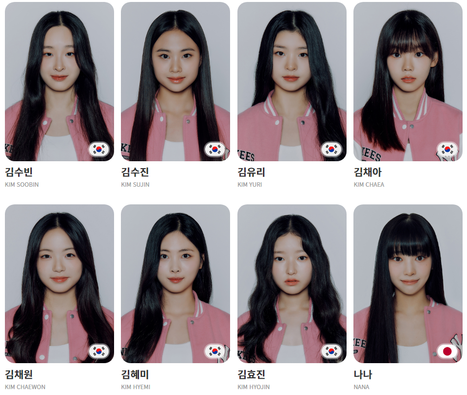 가비, 구교련, 권예진, 권은형, 권채원, 김서연, 김소율, 김수민, 김수빈, 김수진, 김유리, 김채아, 김채원, 김혜미, 김효진, 나나, 나루미, 나차야손, 나코, 노연우, 니지, 로라, 리엘, 메이, 미나리, 미라, 바네사, 박예원, 박예현, 방윤하, 배예람, 배하람, 부린단, 샤오위, 아야 나츠미, 안승비, 안씬, 알리사, 애니, 야마구치 유리코, 양유진, 엘리시아, 오다은, 오윤아, 요나, 우키크, 유리, 유예나, 유우, 유키노, 윤수인, 이도타 유이, 이선우, 이수빈, 이수안, 이은채, 이즈미, 이진이, 이후란, 임서원, 장민주, 장수빈, 장수아, 저우지아치, 전지은, 전진영, 정지원, 정희경, 제시카, 제이라, 젤리 당카, 조민서, 조채영, 진현주, 최성은, 최여진, 최혜린, 코토코, 피아, 퍼선빈, 혼마 유리코, 황시은